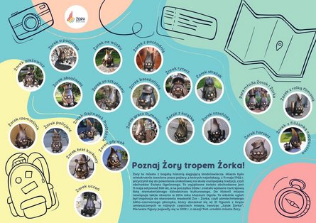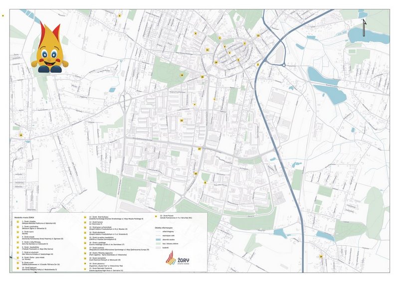 To właśnie ogień był inspiracją do stworzenia maskotki Żor - Żorka, czyli uśmiechniętego żółto-czerwonego płomyka, który doczekał się aż 21 figurek z brązu umieszczonych w różnych częściach miasta i tworzących “Szlak Żorka”. Pierwsze figurki pojawiły się w 2012 roku z okazji 740. urodzin Miasta Żory. Wszystkie figurki, które obecnie znajdują się na terenie miasta, można zlokalizować z pomocą poniższej mapy.