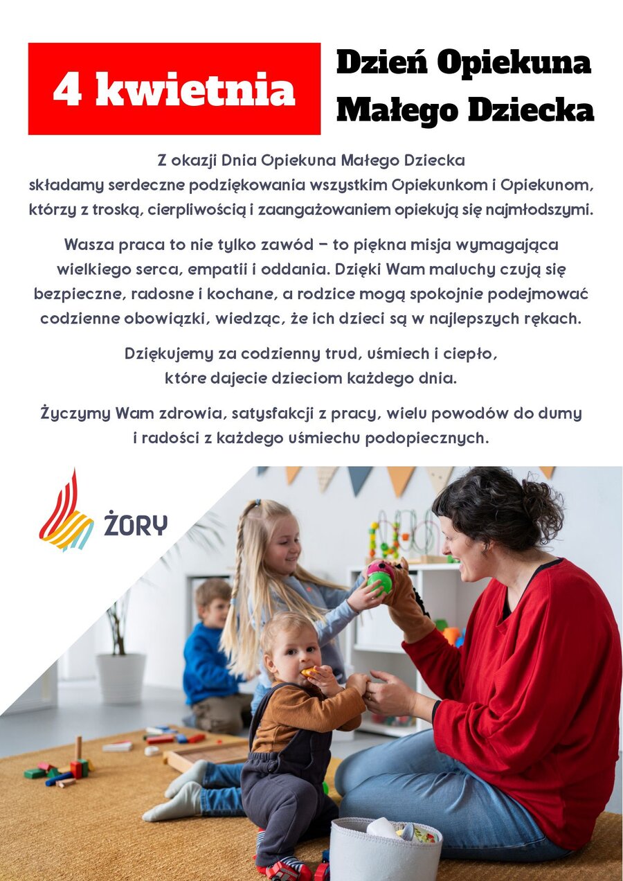 4 kwietnia obchodzimy Dzień Opiekuna Małego Dziecka. Dziękujemy za zaangażowanie i codzienny trud wkładany w zapewnienie jak najlepszej opieki kolejnym pokoleniom maluchów!