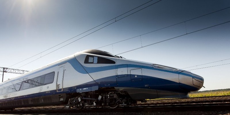 Szybki pociąg na torach. Fot. www.cpk.pl