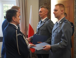 W dniu wczorajszym, z rąk I Zastępcy Komendanta Wojewódzkiego insp. Radosława Kacprzaka oraz Komendant Miejskiej Policji w Żorach mł. insp. Agaty Głowackiej awans na wyższe stopnie służbowe odebrało 27 policjantów.
