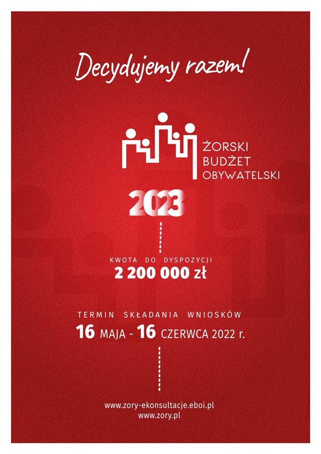 O terminach i szczegółach dalszych etapów będziemy informowali na bieżąco m.in. na miejskiej stronie internetowej www.zory.pl, na profilu facebookowym Miasto Żory, w BIP oraz na tablicach ogłoszeń Urzędu Miasta.