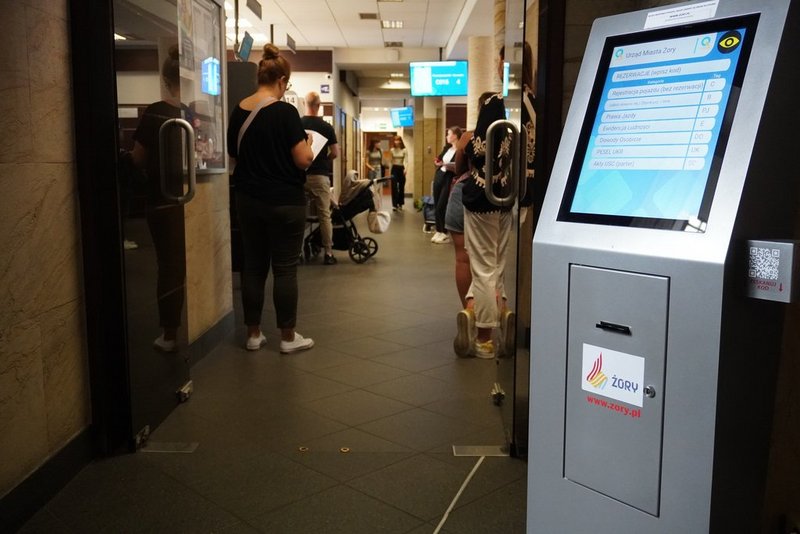 Uwaga! Klienci, którzy nie mają dostępu do Internetu, mogą umawiać wizyty telefonicznie, kontaktując się z odpowiednim referatem. W tej sytuacji po przybyciu na umówioną godzinę, należy pobrać w automacie bilet, wybierając usługę, której dotyczy załatwiana sprawa. Klienci oczekujący na wywołanie numeru biletu, mogą skorzystać z poczekalni.