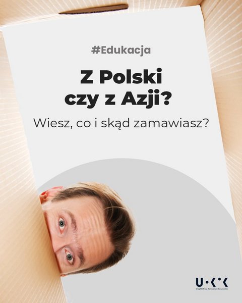 Grafika z napisem #Edukacja - Z Polski czy z Azji? Wiesz, co i skąd zamawiasz? Źródło: UOKiK.
