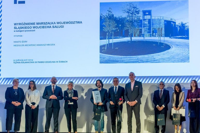 Waldemar Socha – Prezydent Miasta Żory odebrał wyróżnienie od wicemarszałka Leszka Pietraszka, które Miasto Żory dostało za tężnię solankową w Parku Cegielnia w Żorach.