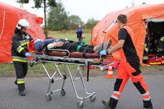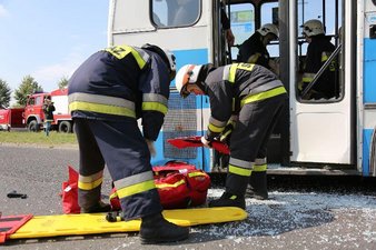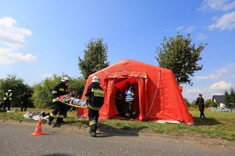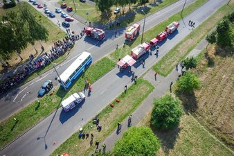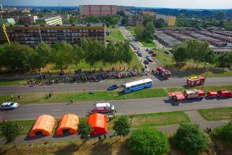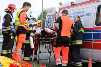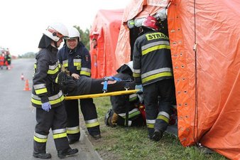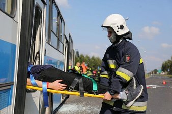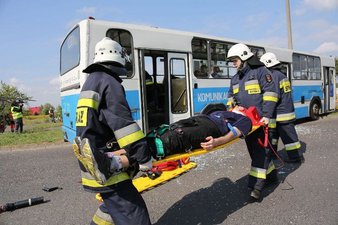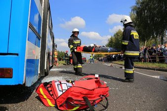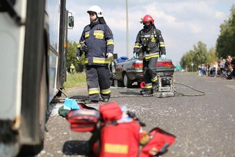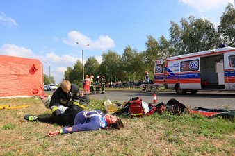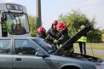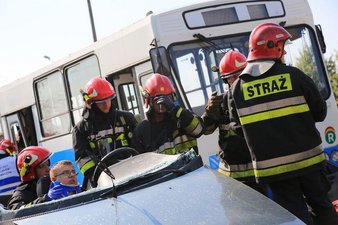 Po warsztatach, na zamkniętych odcinku ul. Okrężnej w Żorach uczestnicy projektu wzięli udział w manewrach taktyczno-operacyjnych, symulujących wypadek drogowy z interwencją połączonych służb policji, straży pożarnej i pogotowia ratunkowego. Przeprowadzono akcję reagowania na symulowany wypadek drogowy z ryzykiem rozprzestrzenienia się substancji niebezpiecznych, w którym wzięły udział samochód osobowy i autobus. Przybyli na miejsce strażacy rozcięli samochód i uwolnili kierowcę osobówki. Inna grupa zajęła się ewakuacją uczniów z rozbitego autobusu. Ranni zostali podzieleni według skali odniesionych obrażeń. Oddziałom Państwowej Straży Pożarnej z pomocą przybyli strażacy z OSP. Ranni zostali odwiezieni prze karetki pogotowia do szpitala. Manewry toczące się przy ul. Okrężnej obserwowało setki osób.