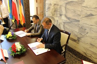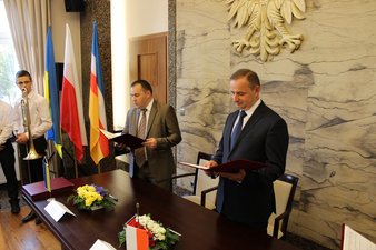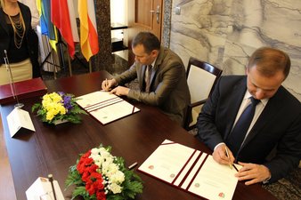Galeria zdjeć przedstawiające podpisanie aktów partnerstwa przez przedstawicieli obu miast